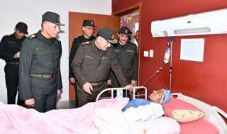 الفريق أسامة عسكر يزور عددا من المصابين بمستشفى القوات المسلحة بالحلمية للعظام والتكميل