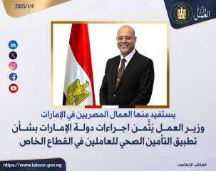 يستفيد منها العمال المصريين في الإمارات ...وزير العمل يُثَّمن اجراءات دولة الإمارات بشأن تطبيق التأمين الصحي