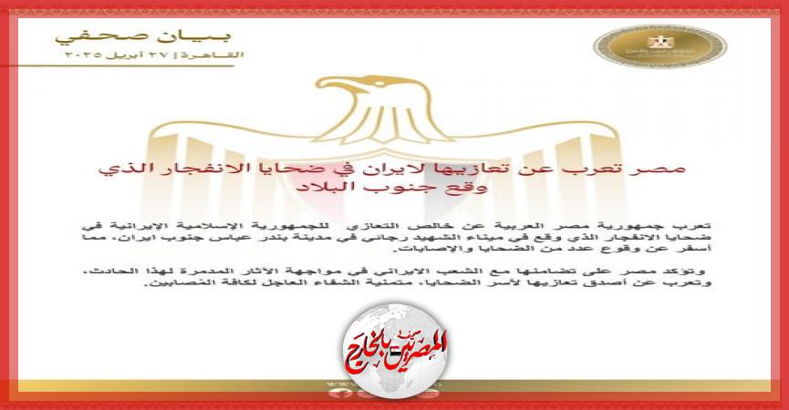 مصر تعرب عن تعازيها لإيران في ضحايا انفجار”ميناء رجائي” جنوب البلاد