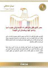 الخارجية:مصر تُتابع بقلق بالغ تطورات الأوضاع بين الهند وباكستان وتدعو إلى التهدئة