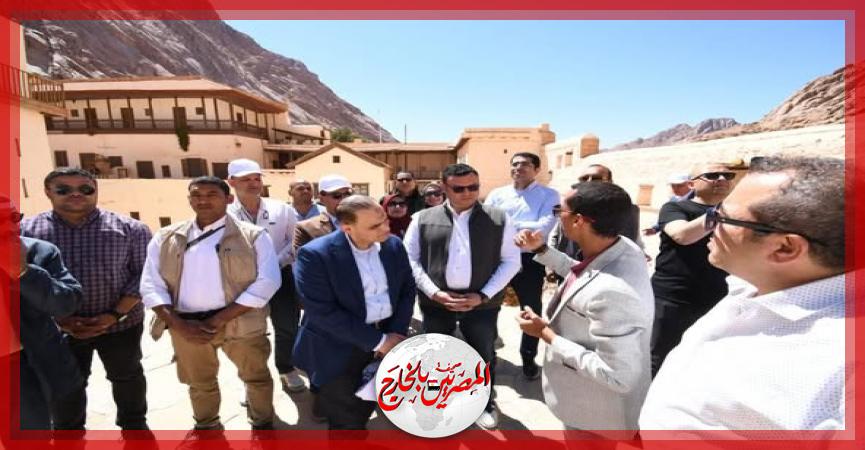 كما استمع وزير الإسكان خلال جولته بدير سانت كاترين، إلى شرح مفصل حول تاريخ الدير والرهبنة في سيناء، وتم استعراض المكانة الدينية لمكونات دير سانت كاترين، الذي يجمع داخل جدرانه بين الديانات السماوية الثلاث في مزج فريد من نوعه لا يحدث إلا على أرض التجلي الأعظم، وهو ما وضع مدينة سانت كاترين على قائمة التراث العالمي، حيث تضم جدران الدير شجرة العليقة وكنيسة التجلي الكنيسة الرئيسية بالدير، والجامع الفاطمي الظاهر بمئذنته المتجاورة جنبا إلى جنب مع برج أجراس الكنيسة.