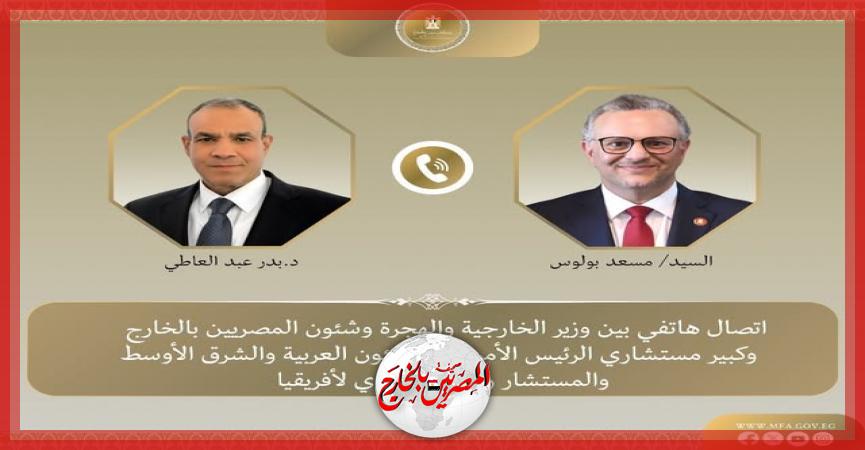 حث وزير الخارجية والهجرة وشئون المصريين بالخارج الدكتور بدر عبدالعاطي، هاتفيًا اليوم /الثلاثاء/، مع كبير مستشاري الرئيس الأمريكي للشئون العربية والشرق الأوسط والمستشار رفيع المستوى لإفريقيا مسعد بولس، تطورات الأوضاع في ليبيا والسودان ومنطقة البحيرات العظمى.