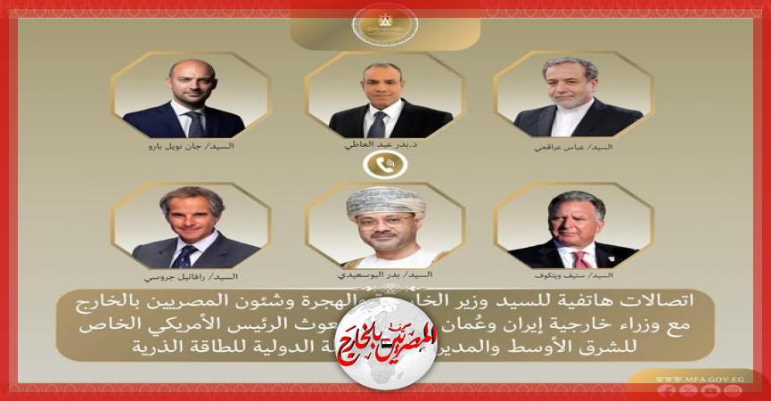 في إطار توجيهات السيد رئيس الجمهورية بتكثيف الاتصالات مع الأطراف الإقليمية والدولية لخفض التصعيد وتحقيق التهدئة في المنطقة ودعم الأمن والاستقرار بالشرق الأوسط، أجرى د. بدر عبد العاطي وزير الخارجية والهجرة مساء أمس ٤ يوليو وصباح اليوم ٥ يوليو سلسلة من الاتصالات مع السيد عباس عراقجي وزير الخارجية الإيراني، والسيد بدر بن حمد البوسعيدي وزير خارجية العُماني، والسيد جان نويل بارو وزير الخارجية الفرنسي، والسيد ستيف ويتكوف مبعوث الرئيس الأمريكي الخاص للشرق الأوسط، والسيد رافائيل جروسي المدير العام للوكالة الدولية للطاقة الذرية.