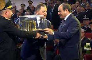 وزير الداخلية يقدم هدية تذكارية للرئيس السيسى خلال احتفالية عيد الشرطة