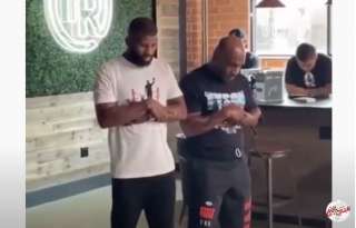 بالصورة.. صلاة الملاكم العالمي "مايك تايسون" داخل أحد الكافيهات تشعل مواقع التواصل