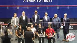 وزير الرياضة يسلم علي فرج ونور الشربيني جوائز بطولة مصر الدولية للإسكواش