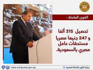 وأكد الملحق العمالى أحمد رجائي، رئيس مكتب التمثيل العمالى بالرياض، أنه بناء على شكوى المواطن «محفوظ.ع.م» الذي يلتمس فيه مساعدته في الحصول على مستحقاته المالية النظامية لدى شركة للمقاولات التي كان يعمل بها تمت مخاطبة الخارجية السعودية لمساعدة المواطن في الحصول على مستحقاته، وبالفعل تم حل مشكلته واستدعته محكمة التنفيذ بالرياض وسلمته شيكًا مستحق الدفع بمبلغ 10325 ريـالًا سعوديًا.