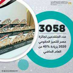 هالة السعيد : 3058 مترشح لنيل جائزة مصر للتميز الحكومي 2020 بزيادة ٤٠٪ عن العام الماضى