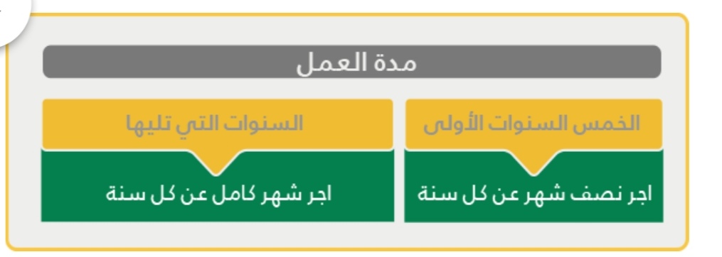 إذا كان انتهاء العلاقة بسبب ترك العامل للعمل نتيجة قوة قاهرة يستحق أجر نصف شهر عن كل سنة من السنوات الخمس الأولى وأجر شهر عن كل سنة بعدها.