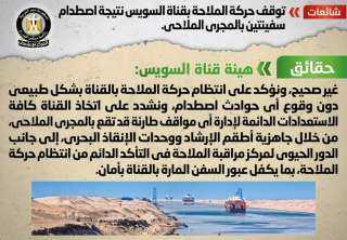 حقيقة توقف حركة الملاحة بقناة السويس نتيجة اصطدام سفينتين بالمجرى الملاحي