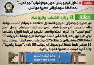 الحكومة تنفي تحويل مركز شباب ”نجع العرب” بمحافظة سوهاج إلى حظيرة مواشي