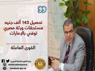 القوى العاملة : تحصيل 143 ألف جنيه مستحقات ورثة مصري توفي بالإمارات