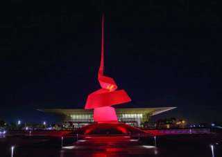 اللون الأحمر يزين مباني الإمارات والعالم العربي تزامنا مع قرب دخول مسبار الأمل للمريخ |صور