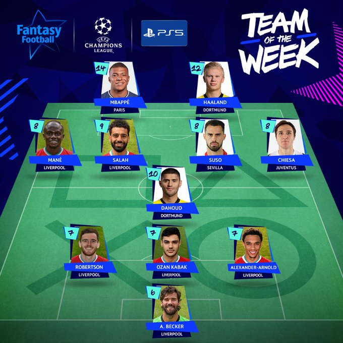 خط الهجوم: فيدريكو كييزا (يوفنتوس) - كيليان مبابي (باريس سان جيرمان) - إيرلينج هالاند (بوروسيا دورتموند)