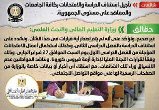 تأجيل استئناف الدراسة والامتحانات بكافة الجامعات والمعاهد على مستوى الجمهورية.. إشاعةوزير التعليم العالي يعتمد تشكيل اللجان النوعية المتخصصة لليونسكو