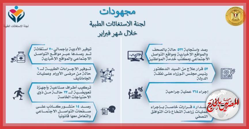 رئيس الوزراء يتابع الجهود المبذولة من لجنة الاستغاثات الطبية خلال فبراير الماضى
