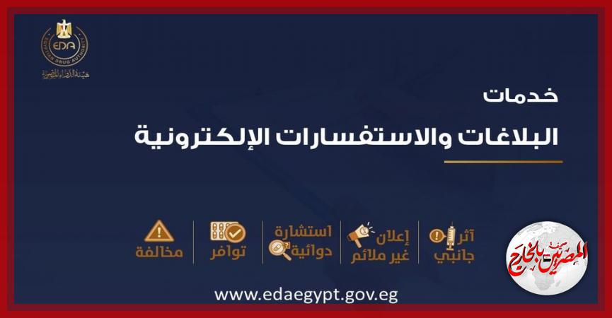وأشار إلى أن خدمة البلاغات والاستفسارات الإلكترونية عبر موقعها الإلكتروني الرسمي تشمل : خدمة توافر: للاستفسار عن مدى توافر المستحضرات الدوائية في السوق الدوائي المصري، خدمة أثر جانبي: للإبلاغ عن الآثار الجانبية للأدوية أو المستحضرات الحيوية واللقاحات أو مستحضرات التجميل أو المستلزمات الطبية، خدمة مخالفة: للإبلاغ عن المخالفات التي تصدر عن المؤسسات الصيدلية أو تداول المستحضرات الصيدلية وجودتها (مثل: أدوية مهربة-أدوية مغشوشة- أدوية منتهية الصلاحية – أدوية مباعة أزيد من السعر الجبري – الإتجار في العينات المجانية)، خدمة استشارة دوائية: وتتيح هذه الخدمة للمواطن إمكانية طلب استشارة دوائية أو الاستفسار عن أي معلومة تتعلق بالأدوية والمستحضرات الصيدلية، خدمة إعلان غير ملائم : للإبلاغ عن المخالفات المتعلقة بمواد التسويق والإعلان الدوائي؛ ومن ثم تقوم الإدارات المعنية بهيئة الدواء المصرية بمتابعة البلاغات والاستفسارات المقدمة واتخاذ الإجراءات اللازمة حيالها.