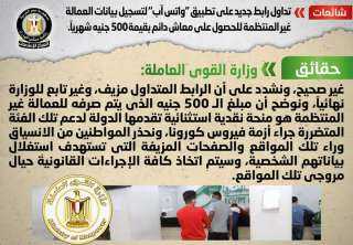 حقيقة تداول رابط جديد على تطبيق ”واتس آب” لتسجيل بيانات العمالة غير المنتظمة للحصول على معاش دائم بقيمة 500 جنيه شهرياً