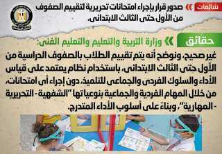 حقيقة صدور قرار بإجراء امتحانات تحريرية لتقييم الصفوف من الأول حتى الثالث الابتدائي