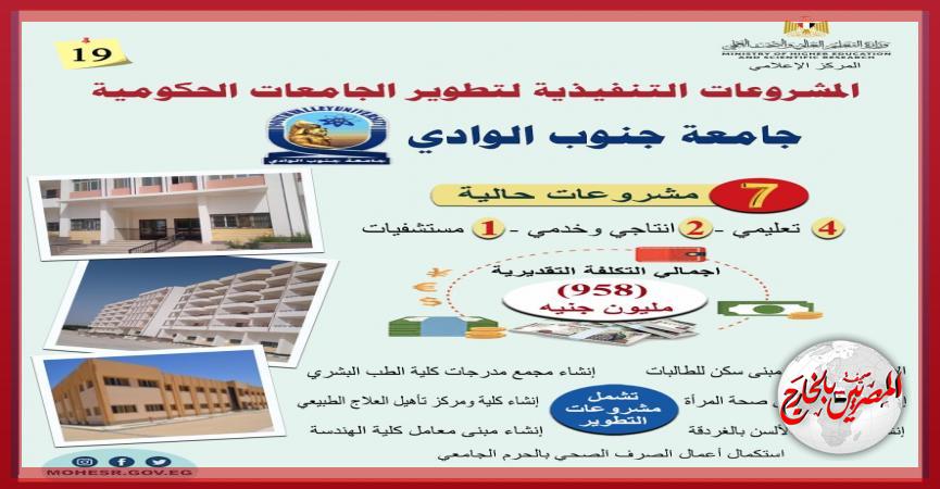 وزير التعليم العالي مشروعات جامعة جنوب الوادي مليون جنيه الجامعات الحكومية