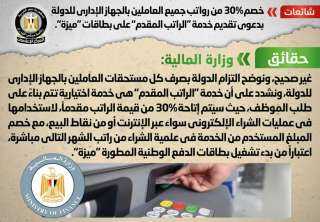خصم 30% من رواتب جميع العاملين بالجهاز الإداري للدولة بدعوى تقديم خدمة "الراتب المقدم" على بطاقات "ميزة".. أشاعة