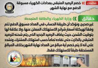 الحكومة تنفى شائعة: خصم الرصيد المتبقي بعدادات الكهرباء مسبوقة الدفع مع نهاية الشهر