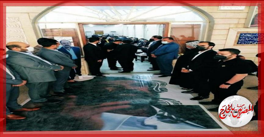 وبحسب صورة التقطت داخل مجلس عزاء القاضي العراقي محمد العريبي، فإن صورة صدام حسين وضعت على الأرض في مدخل قاعة المجلس، وداس عليها المعزون.