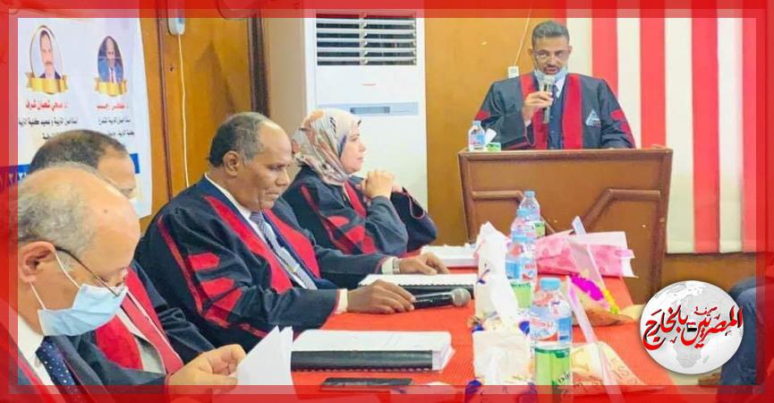وتمت مناقشة الرسالة بكلية التربية جامعة السادات بحضور لجنة مناقشة وإشراف تكونت من الدكتور مصطفي رجب أستاذ أصول التربية المتفرغ بجامعة سوهاج رئيسا ومشرفا، والدكتور صبحي شعبان عميد كلية التربية بجامعة المنوفية مناقشا خارجيا، والدكتور زهير السعيد الرئيس السابق لقسم أصول التربية بجامعة السادات مشرفا وعضوا، والدكتورة مني محمد الحرون رئيس قسم أصول التربية بجامعة السادات مناقشا داخليا.