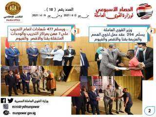 حصاد الأسبوع لوزارة القوى العاملة .. تسليم 17928 وثيقة تأمين تكافلي للصيادين والعمالة غير المنتظمة بـ 3 محافظات