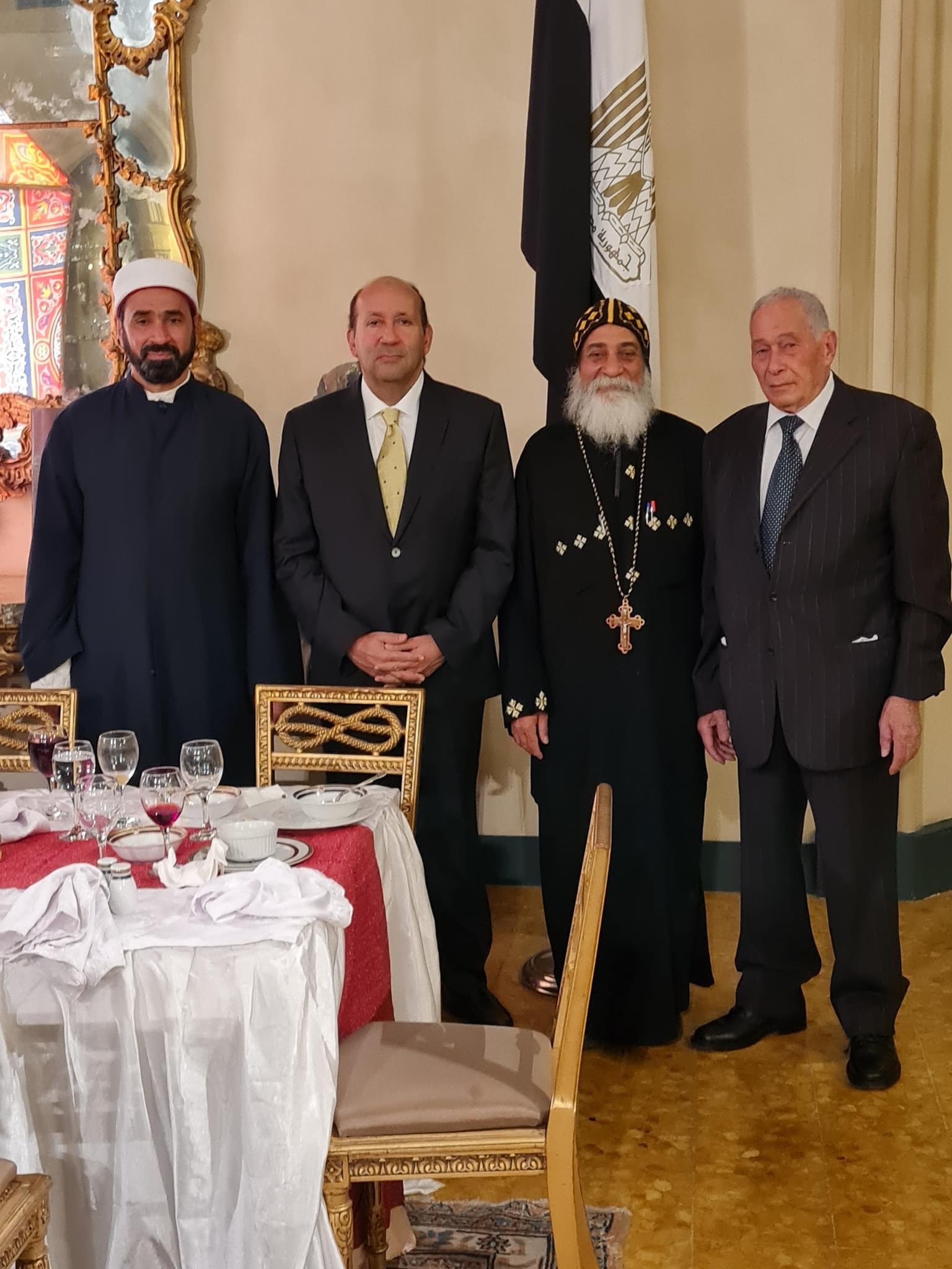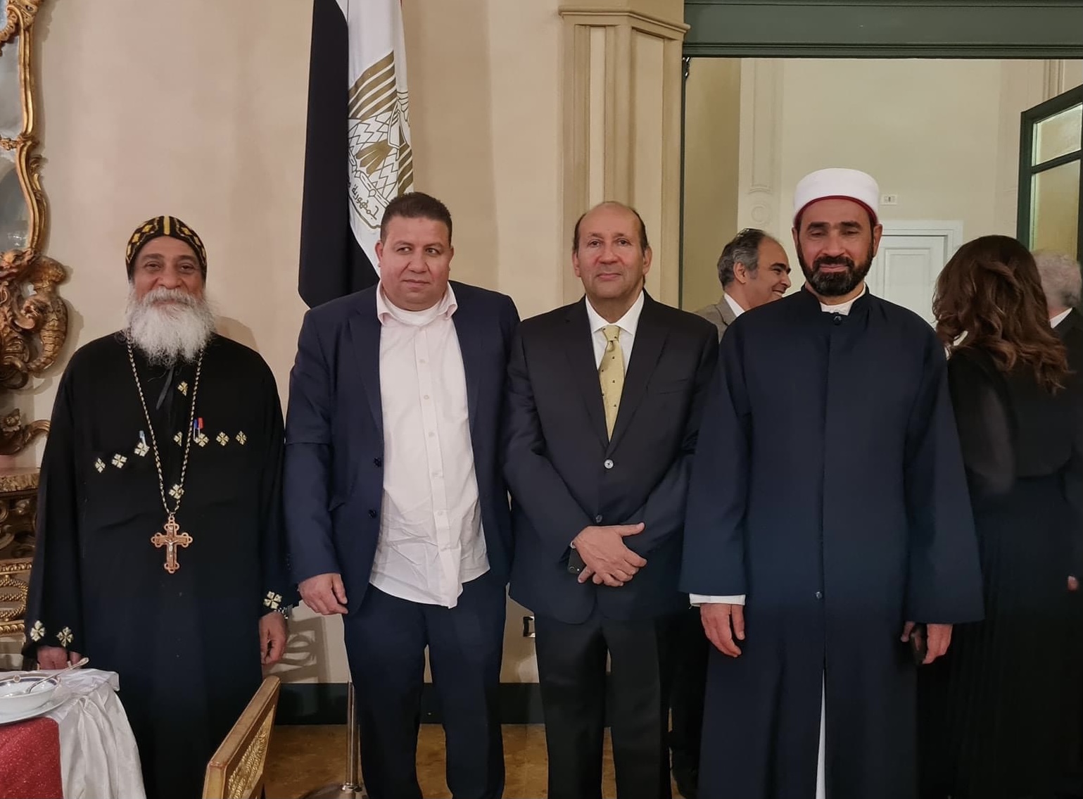 استضاف سعادة السفير " هشام بدر سفير جمهورية مصر العربية في دولة ايطاليا حفل الإفطار الرمضاني السنوي وذلك في مقر السفارة المصرية بروما لاعضاء البعثة الدبلوماسية المصرية بحضور رئيس الجالية المصرية المهندس / عادل عامر ورجال الدين الإسلامي والمسيحى .