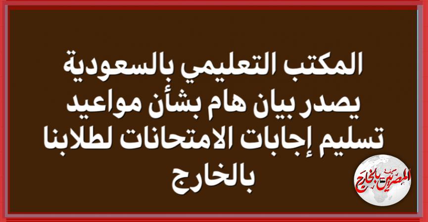 عاجل .. المكتب التعليمي بالسعودية يصدر بيان هام بشأن مواعيد تسليم اجابات الامتحانات لطلابنا بالخارج
