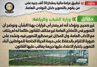 حقيقة تطبيق غرامة مالية بمقدار 50 ألف جنيه على من يقوم بالتصوير داخل النوادي العامة