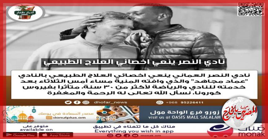 نادي النصر العماني ينعي الكابتن المصري / عماد مجاهد أخصائي العلاج الطبيعي بالنادي