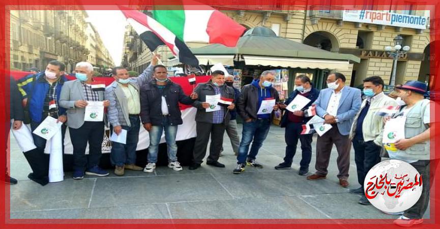 نظم المصريون في إيطاليا وقفة أمام القصر الملكي ومحافظة البيمونتي في مدينة تورينو ومبنى الأمن العام الإيطالي ومركز التدريب الدولي للأمم المتحدة بالقرب من المتحف المصري.