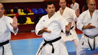 أشرف صبحي يشارك قدامي لاعبي الكاراتيه ”الرواد” المران بالمركز الأولمبي