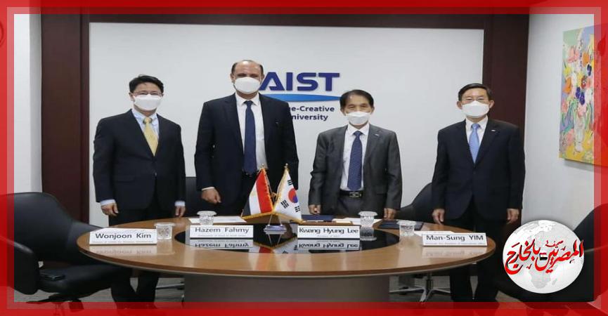 شارك الدكتور حازم فهمي، سفير جمهورية مصر العربية لدي كوريا الجنوبية، في مراسم الاحتفال، عبر تقنية الفيديو كونفرانس يوم 27 إبريل الجاري، بتوقيع مذكرة التفاهم لإنشاء نموذج لأهم جامعة كورية في مجال العلوم والتكنولوجيا "المعهد الكوري المتقدم للعلوم والتكنولوجيا" KAIST بمصر. وقد وقع عن الجانب المصري الدكتورة رشا راغب، المدير التنفيذي للأكاديمية الوطنية للتدريب NTA، وعن الجانب الكوري الأستاذ الدكتور “كوانج هيون لي” رئيس المعهد الكوري المتقدم للعلوم والتكنولوجيا.