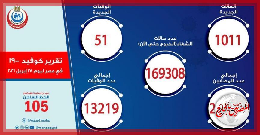 الصحة: تسجيل 1011 حالة إيجابية جديدة بفيروس كورونا ..و 51 حالة وفاة