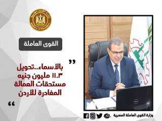 كما استطاع مكتب التمثيل العمالي التابع للوزارة بالسفارة المصرية بعمان-الأردن، بالمتابعة اللحظية والجهود المبذولة والمقابلات مع المسئولين بمؤسسة الضمان الاجتماعي بالأردن، واستكمالا لما تم تحويله سابقا، تم تحويل القائمة العشرين من مستحقات الضمان الاجتماعي لنحو 675 عامل مصري لدى المؤسسة غادروا عمان نهائيا.