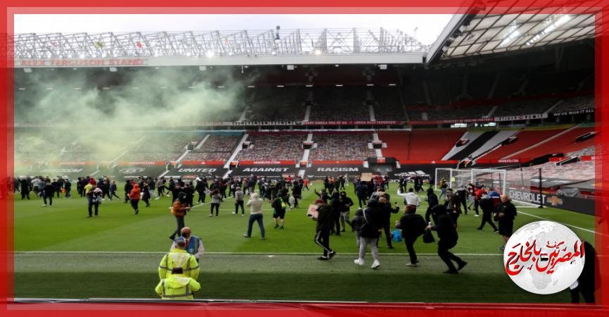 واقتحم مشجعون استاد أولد ترافورد وشقوا طريقهم نحو ملعب المباراة في احتجاج موجه ضد عائلة جلازر مالكة النادي، كما تم إلقاء الزجاجات والحواجز باتجاه ضباط الشرطة والخيل خارج الملعب.