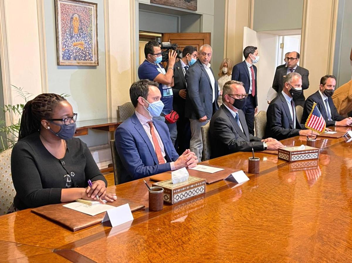 التقى سامح شكري وزير الخارجية والدكتور محمد عبد العاطي وزير الموارد المائية والري اليوم الأربعاء الموافق ٥ مايو ٢٠٢١ مع جيفري فيلتمان المبعوث الأمريكي للقرن الأفريقي والوفد المرافق له لمناقشة مستجدات مفاوضات سد النهضة وللتشاور حول سبل إنجاح الجهود الجارية من أجل التوصل إلى اتفاق عادل ومتوازن وملزم قانوناً حول ملء وتشغيل سد النهضة.