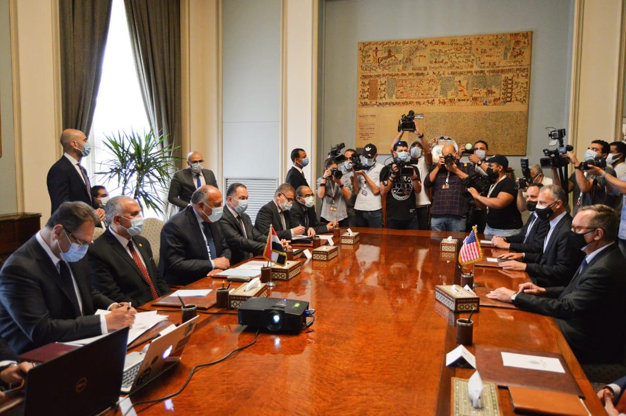 وصرح السفير أحمد حافظ المتحدث الرسمي لوزارة الخارجية أن الوزيرين استعرضا خلال الاجتماع مسار ملف سد النهضة الممتد لعقد كامل منذ أن بدأت إثيوبيا بناء هذا السد دون التشاور مع دولتي المصب وانتهاءً بالمفاوضات الجارية على قواعد ملء وتشغيل سد النهضة والتي لم تكلل بالنجاح بسبب تعنت إثيوبيا ورفضها كل الأطروحات الفنية حول قواعد الملء والتشغيل التي قدمتها مصر خلال المفاوضات أو التي ساهم في إعدادها وسطاء دوليين وقبلتها مصر، ومنها الاتفاق الذي انتهت إليه المفاوضات التي جرت برعاية أمريكية.
