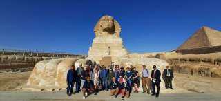 بحضور القنصل الأمريكي زاهي حواس يستقبل أول وفد أمريكي بعد جائحة كورونا أمام تمثال أبو الهول