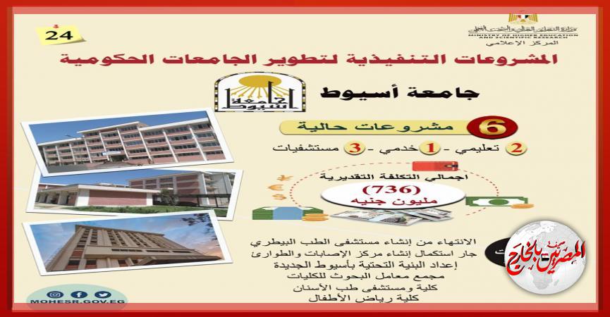 وأوضح التقرير أن التكلفة الإجمالية للمشروعات الجاري تنفيذها في جامعة أسيوط تبلغ نحو 736 مليون جنيه.