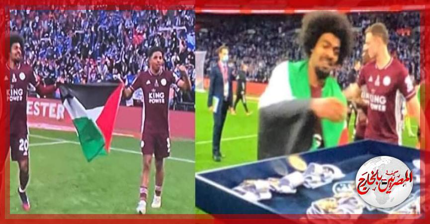 لاعب ليستر سيتي يحتفل بلقب كأس الاتحاد مرتديا علم فلسطين