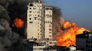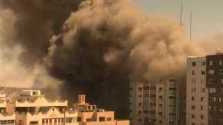إطلاق صواريخ من طائرة إسرائيلية على برج الجلاء الذي يضم مكاتب لوسائل إعلام في غزة