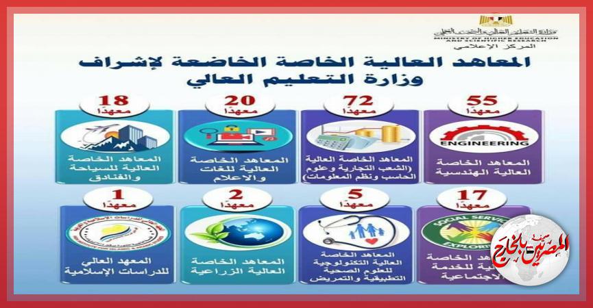 وأشار التقرير إلى أن إجمالي عدد المعاهد العالية الخاصة حالياً بلغ 190 معهدًا، موزعة على قطاعات أكاديمية متخصصة على النحو التالي: