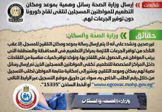 الحكومة تنفى شائعة إرسال الصحة رسائل وهمية بموعد ومكان التطعيم للمواطنين المسجلين لتلقي لقاح كورونا