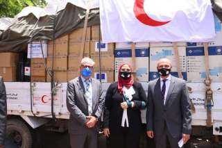 القباج تشهد إطلاق قافلة مساعدات طبية وغذائية للفلسطينيين بالتعاون بين الهلال الاحمر والهجرة الدولية