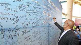 وزير الإسكان يوقع اسمه على اللوحة التذكارية أعلى البرج الأيقوني