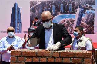 وزير الإسكان يضع حجر الأساس لمشروع أبراج الداون تاون بمدينة العلمين الجديدة التى تنفذها شركة ”cscec” الصينية